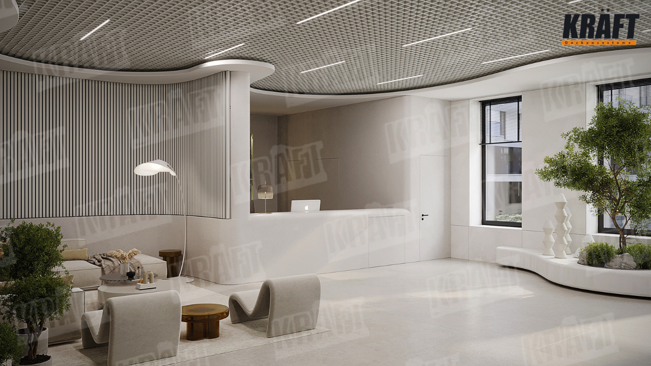A hotel is always a story of impressions. And even such a seemingly secondary element as the ceiling can become the main design accent. The KRAFT GLK Cassette Open Cell Ceiling system allows you to create an atmosphere of high standards — where not only form matters, but also the feeling of quality in every element.