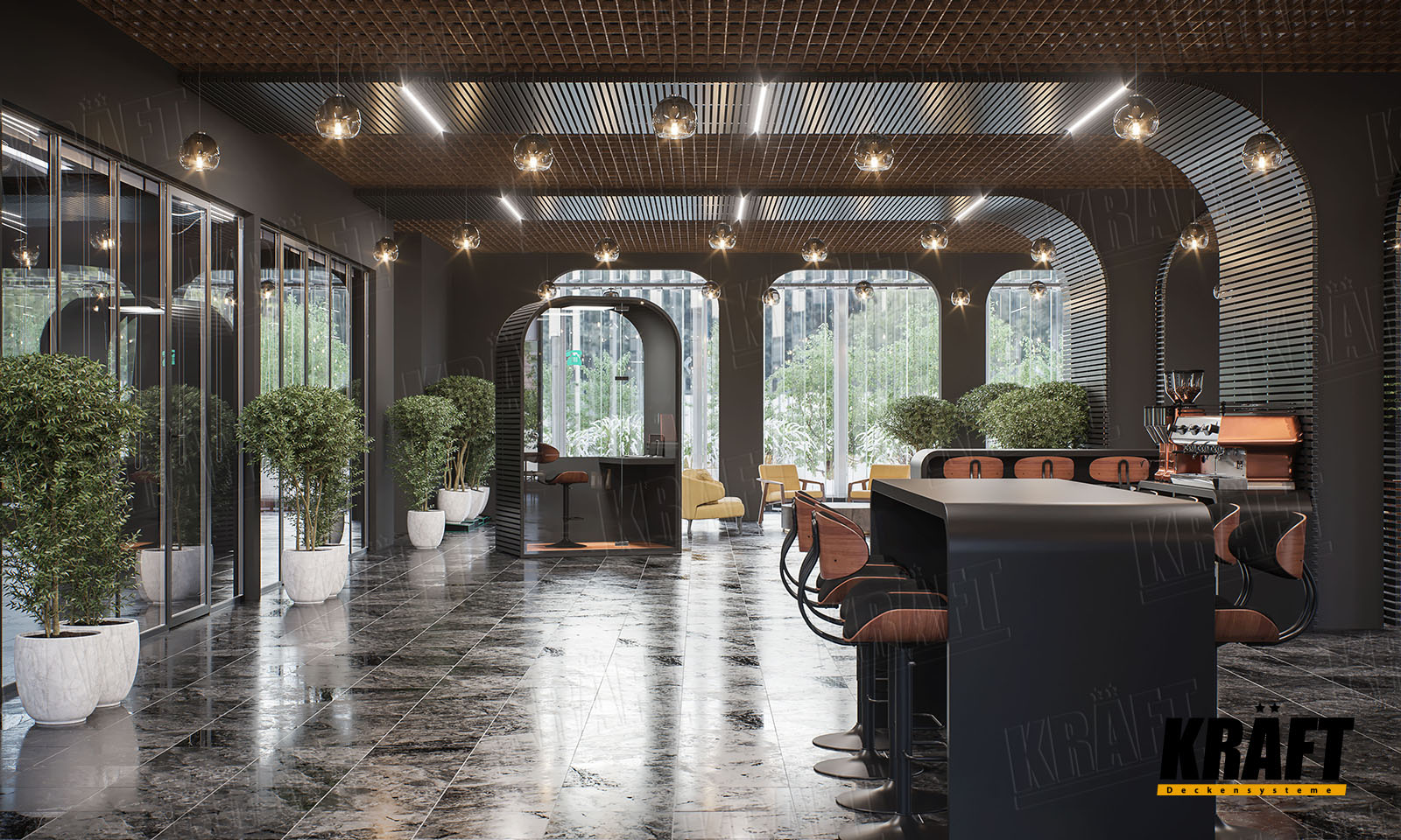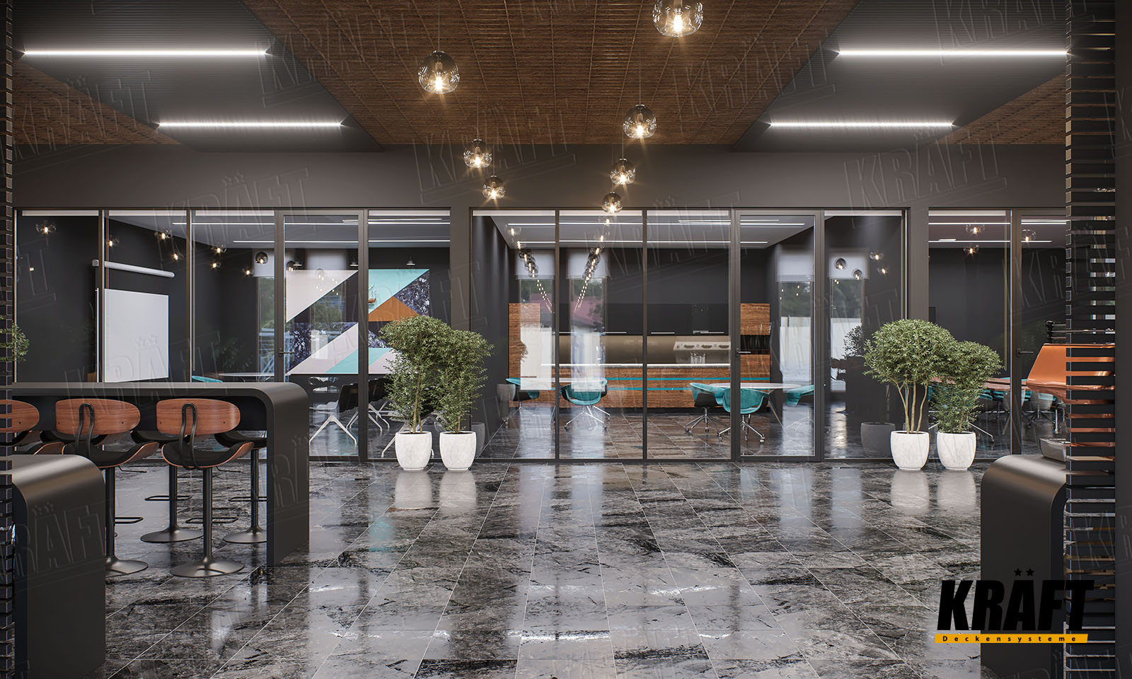 KRAFT ceilings open up creative possibilities for architects and designers. They offer the freedom to combine style, comfort, and innovation — shaping spaces that are not only functional but truly inspiring.