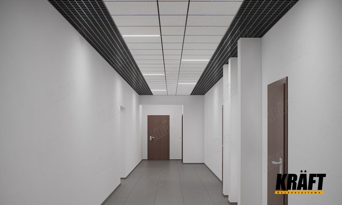 Combination of two types of suspended ceilings: KRAFT rails and T-profiles