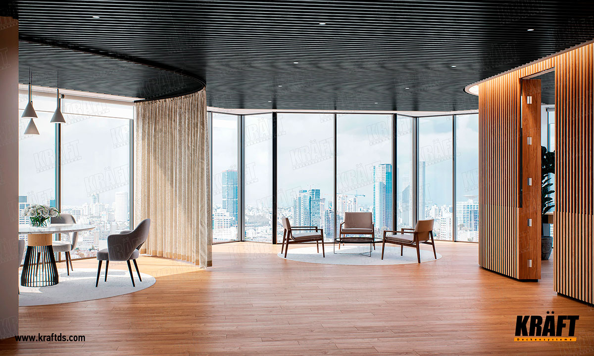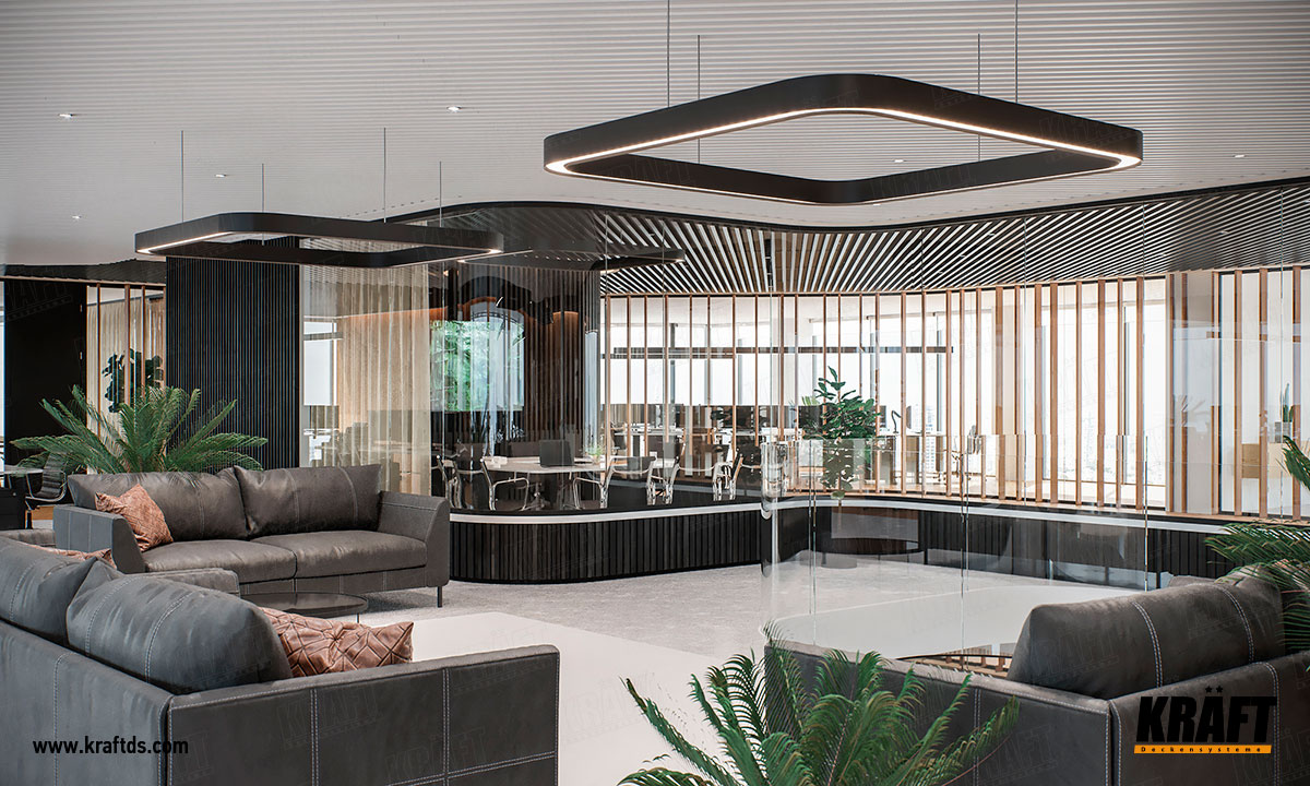 Finansowe zaufanie od sufitu: jak KRAFT kształtuje atmosferę nowoczesnego banku