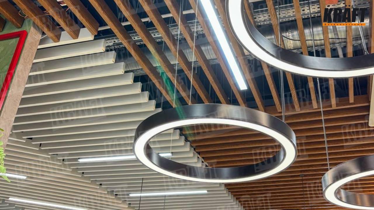 Pyramidal Open Cell Ceiling: The Art of Volume in Modern Interiors