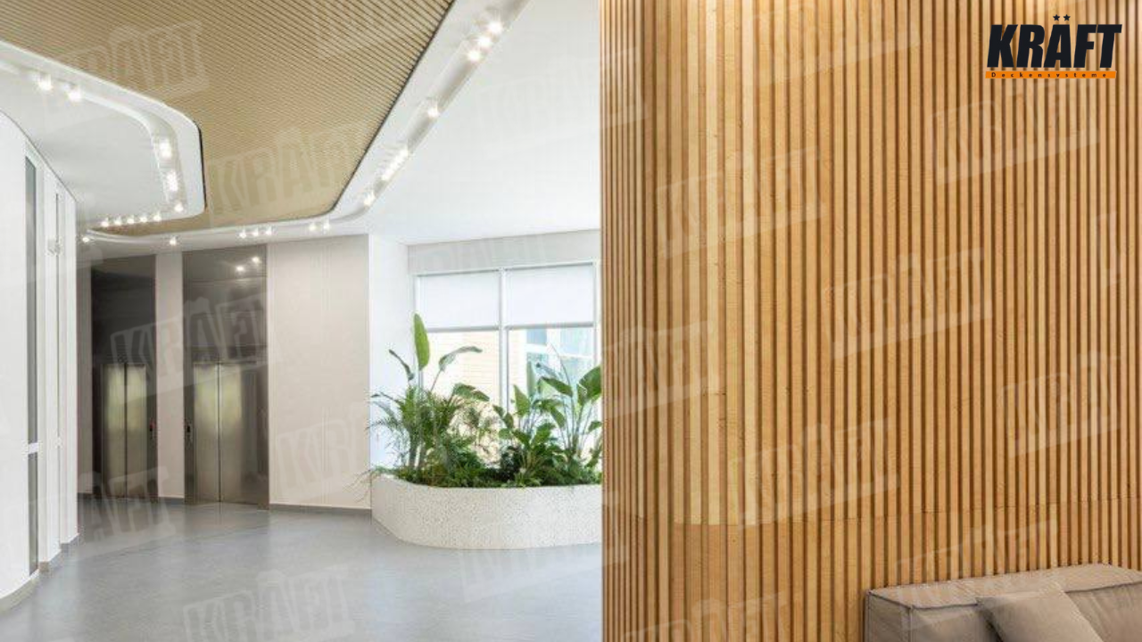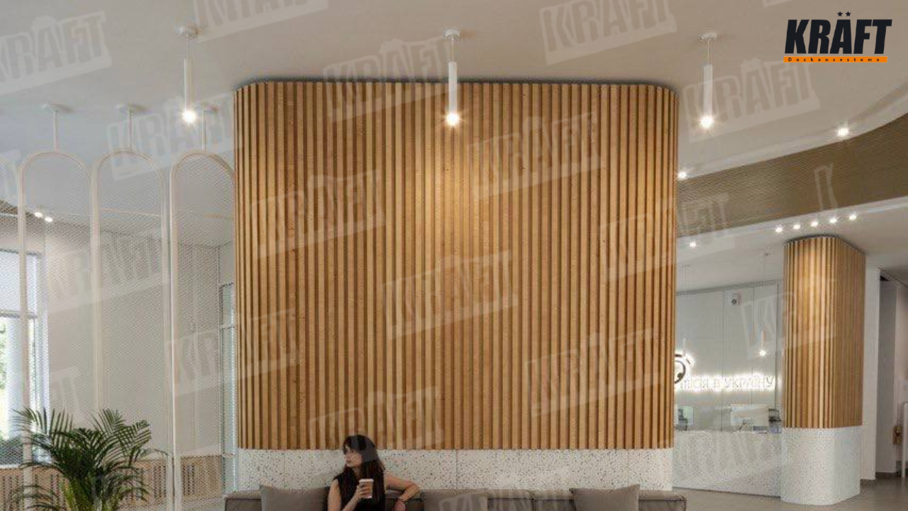In rehabilitation centers, the environment plays a crucial role. The slatted ceiling gently improves acoustics, provides visual comfort, and becomes part of a therapeutic atmosphere — one without unnecessary stimuli but with a sense of coziness.